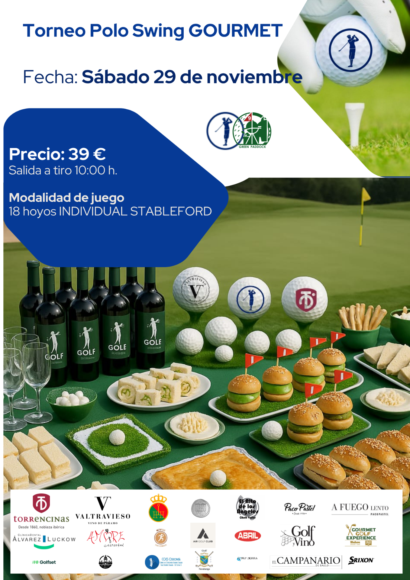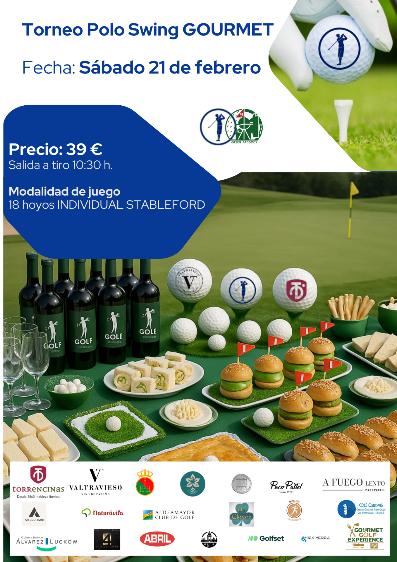 Torneos de pitch and putt en el campo de golf de Green Paddock (Torrelodones) una vez al mes, en un ambiente espectacular, welcome pack patrocinado por Torrencinas y con aperitivo al finalizar, con cata de vinos bodegas Valtravieso y un gran sorteo de regalos entre todos los jugadores/as.