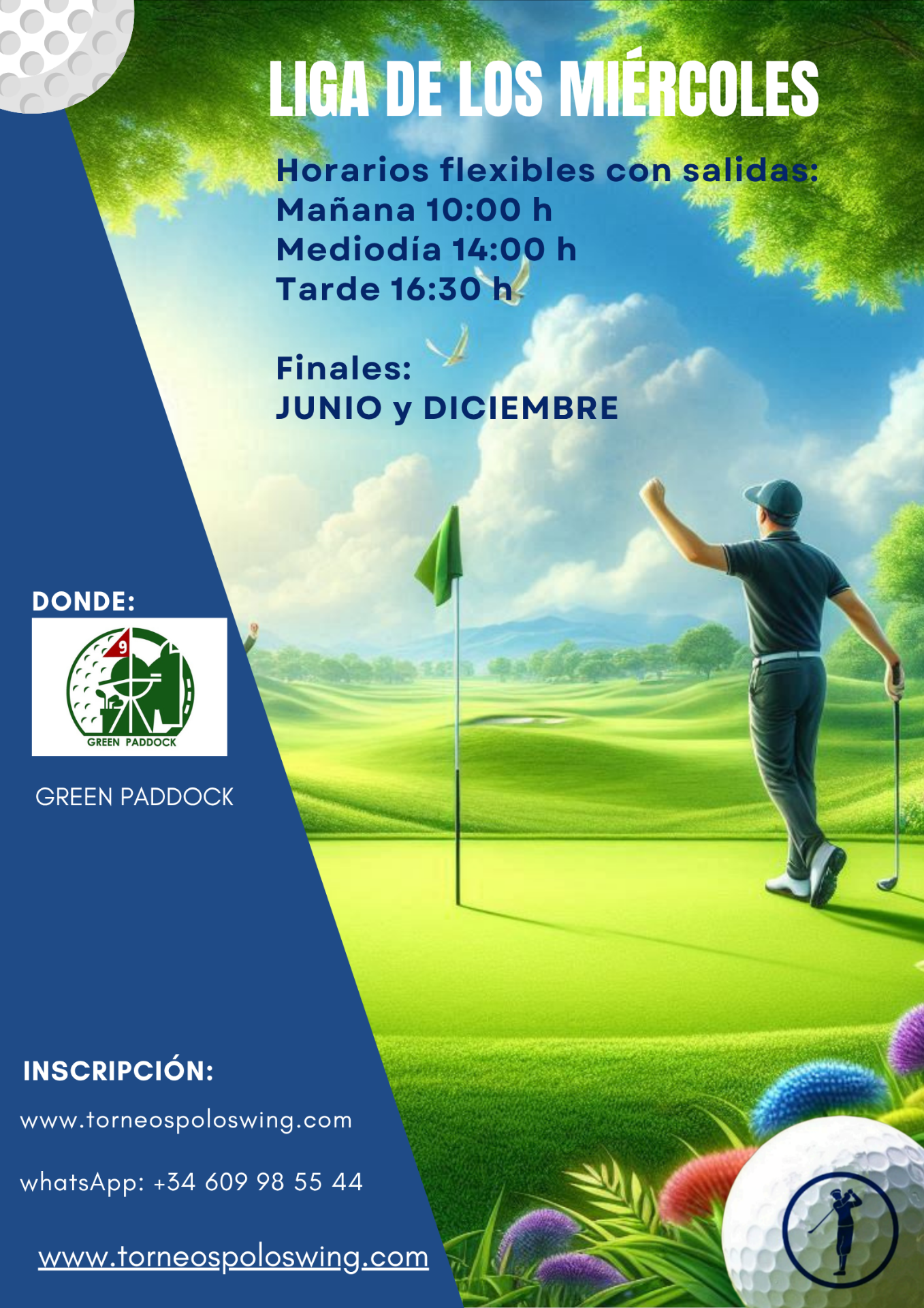 Ahora te lo ponemos fácil, con torneos de golf en Madrid entre semana con la liga de los miércoles y horarios de salida a las 10 h (durante los meses de invierno a las 11:00 h), 14:00 h y turno de tarde a las 16:00 h que va retrasandose a medida que vaya llegando el buen tiempo.